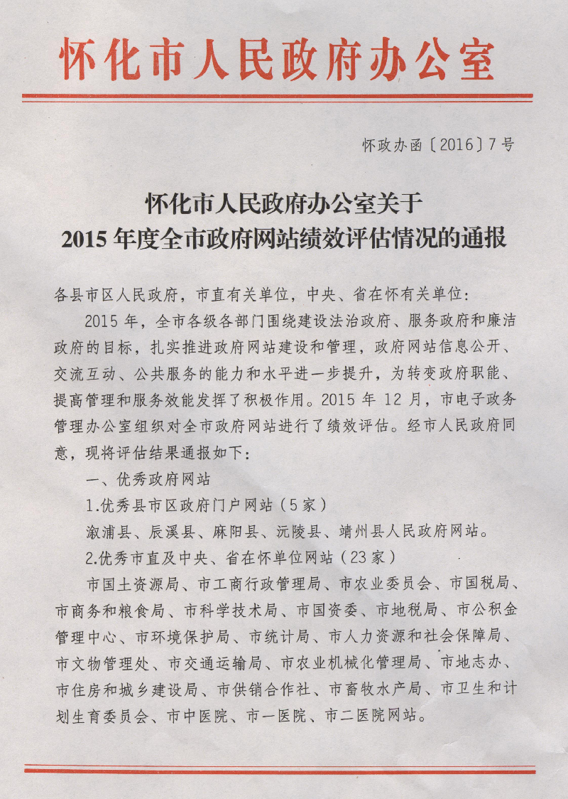 关于2015年度全市政府网站绩效评估情况的通报