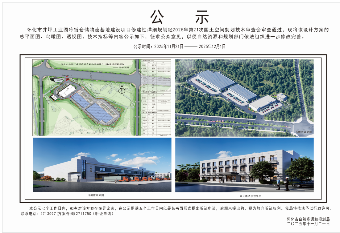 怀化市井坪工业园冷链仓储物流基地建设项目修建性详细规划公示