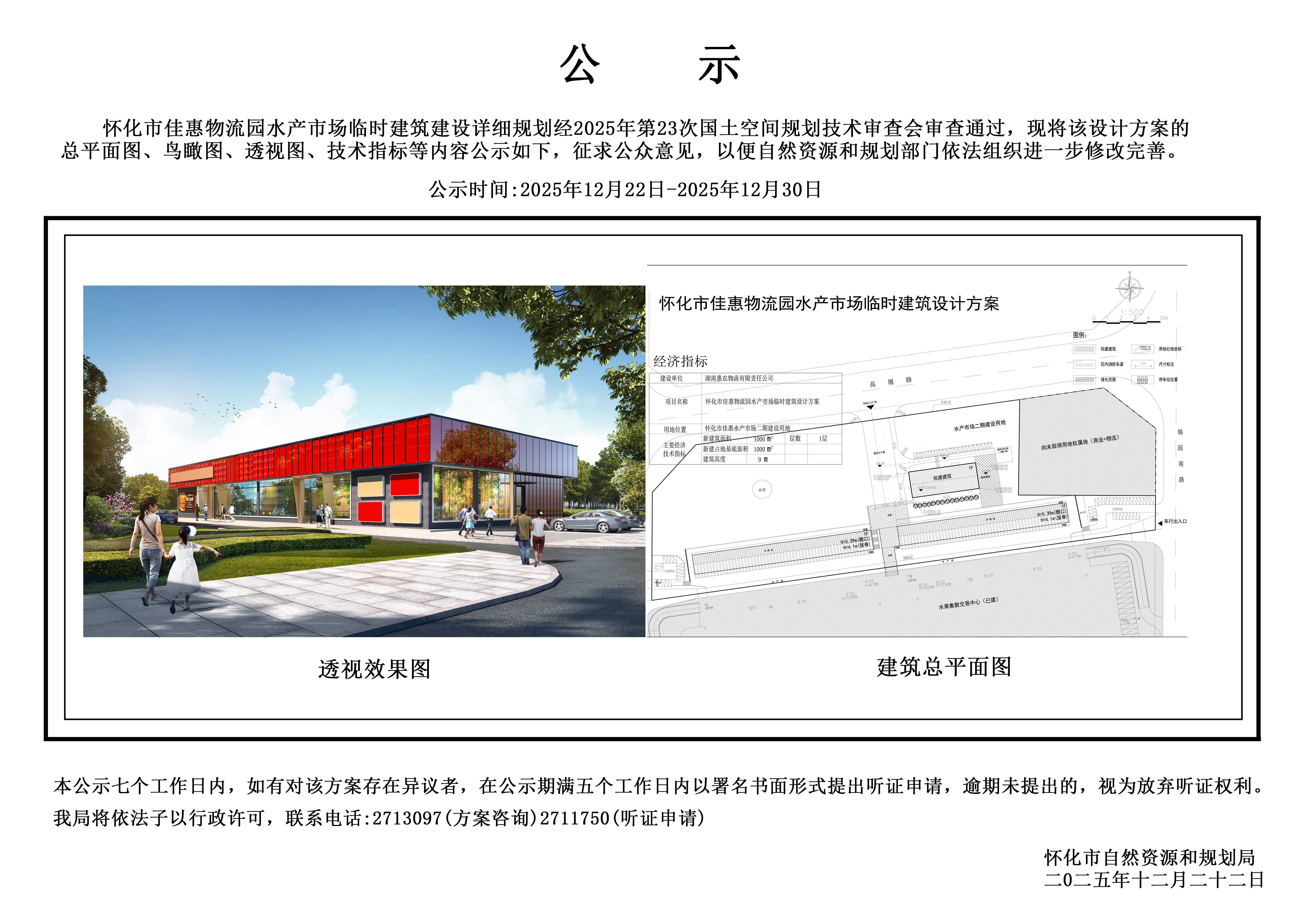 怀化市佳惠物流园水产市场临时建筑建设详细规划公示