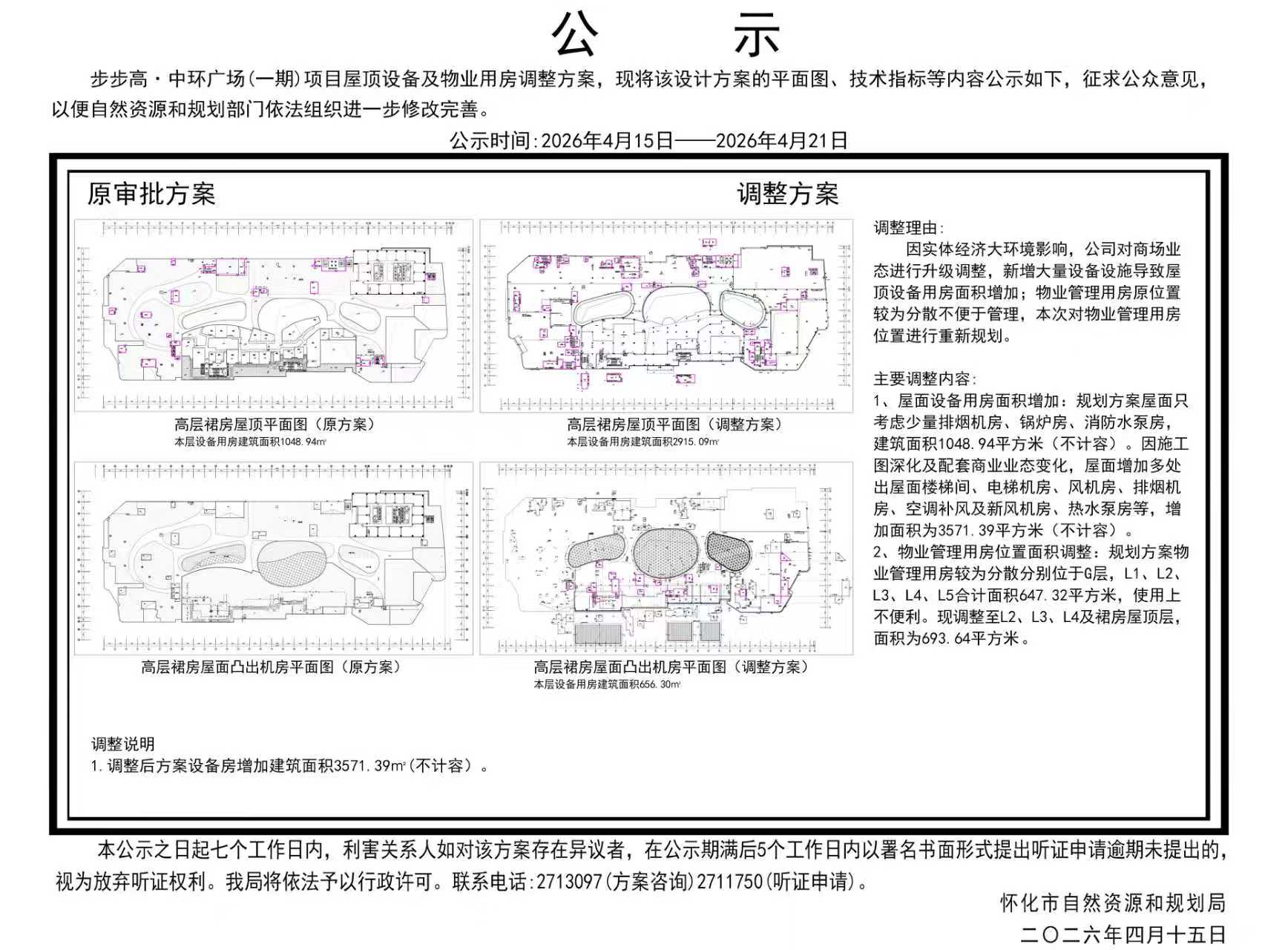 步步高·中环广场(一期)项目屋顶设备及物业用房调整方案公示