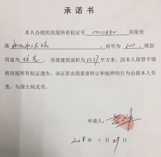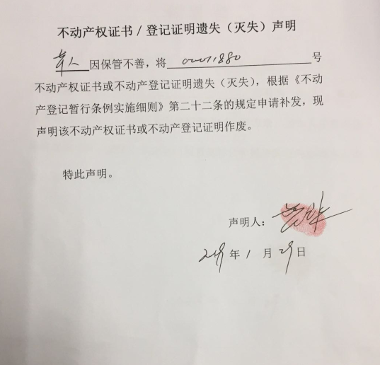 贺远程遗失00011880号房屋所有权证声明