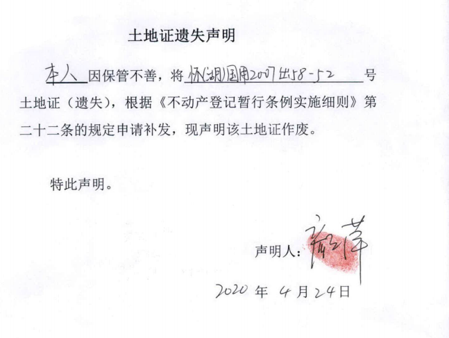 颜萍(怀(湖)国用2007出58-52号 土地证)