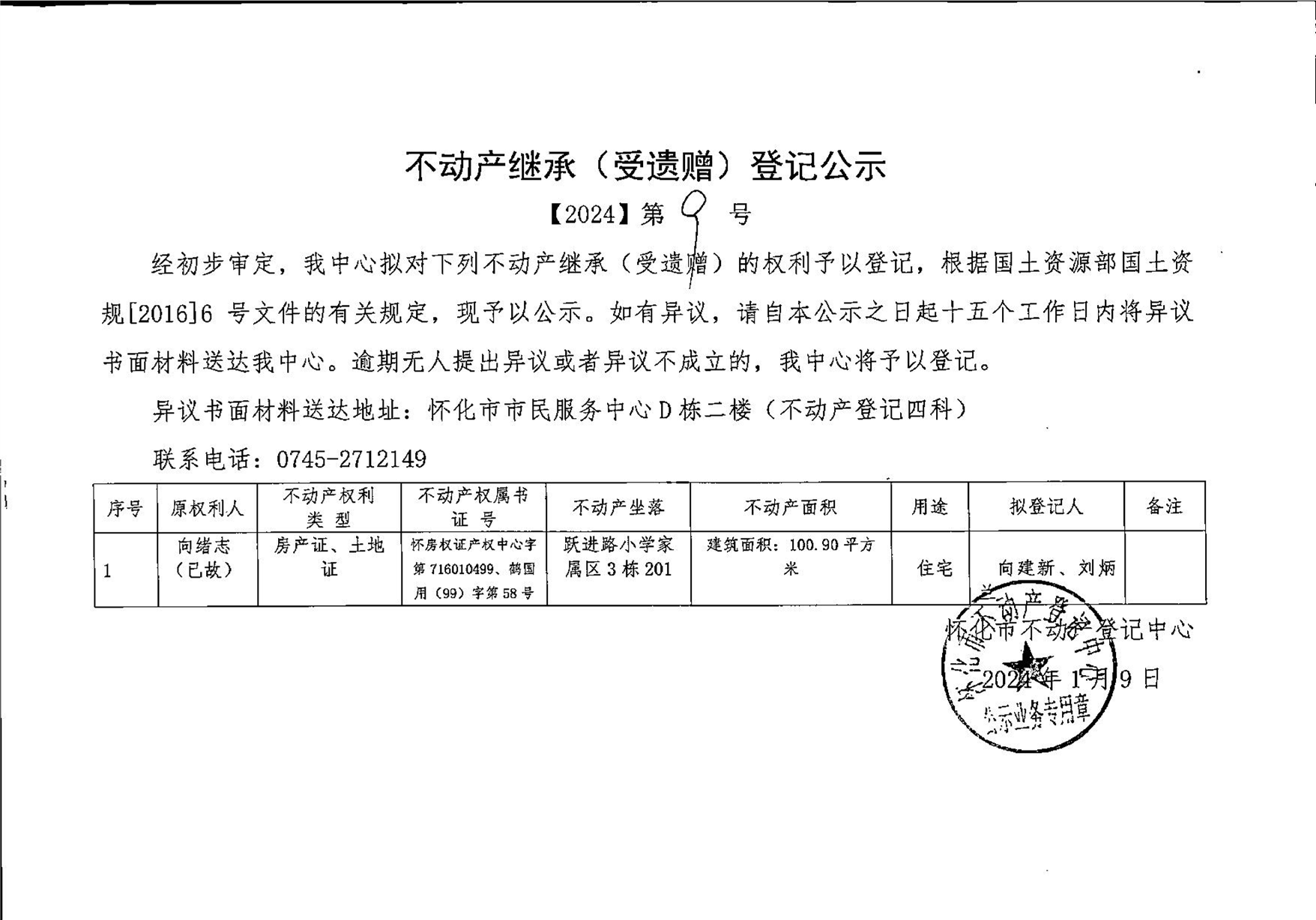 向绪志(已故)继承人向建新、刘炳兰——716010499、鹤国用99字第58号