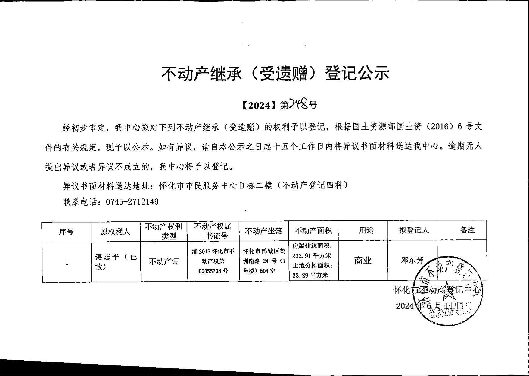 谌志平(已故)继承人邓东芳——湘2018怀化市不动产权第00055738号